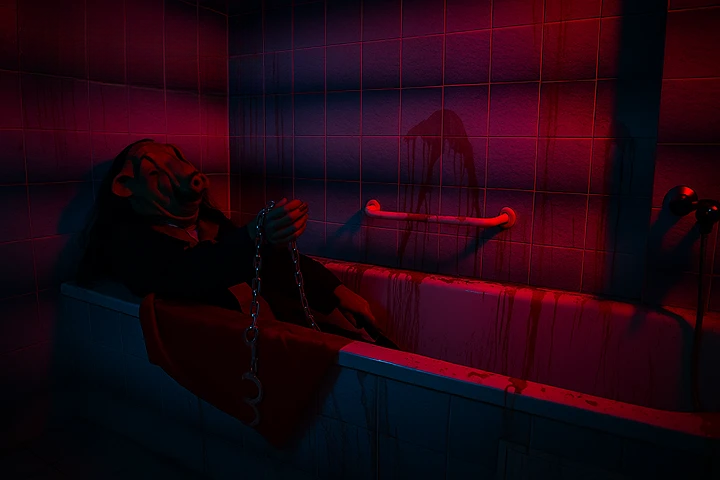 Ocitnete se v koupelně z prvního dílu Saw plné pastí a hádanek. Každý krok může být klíčem k přežití.